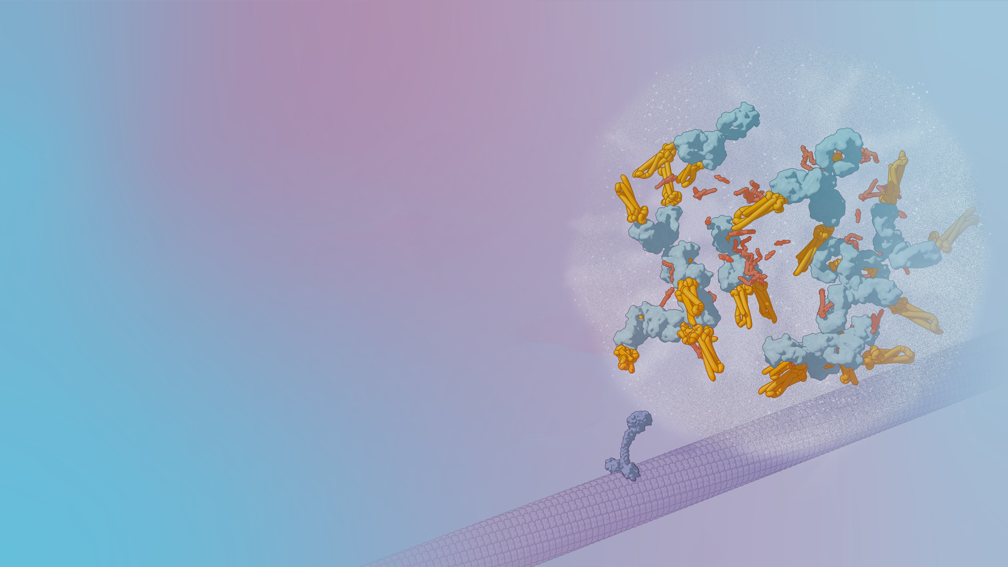 In blue is the antibody, which provides targeting to tumors. The antibody finds the protein TM4SF1, which is predominantly located in tumors, and binds to it.